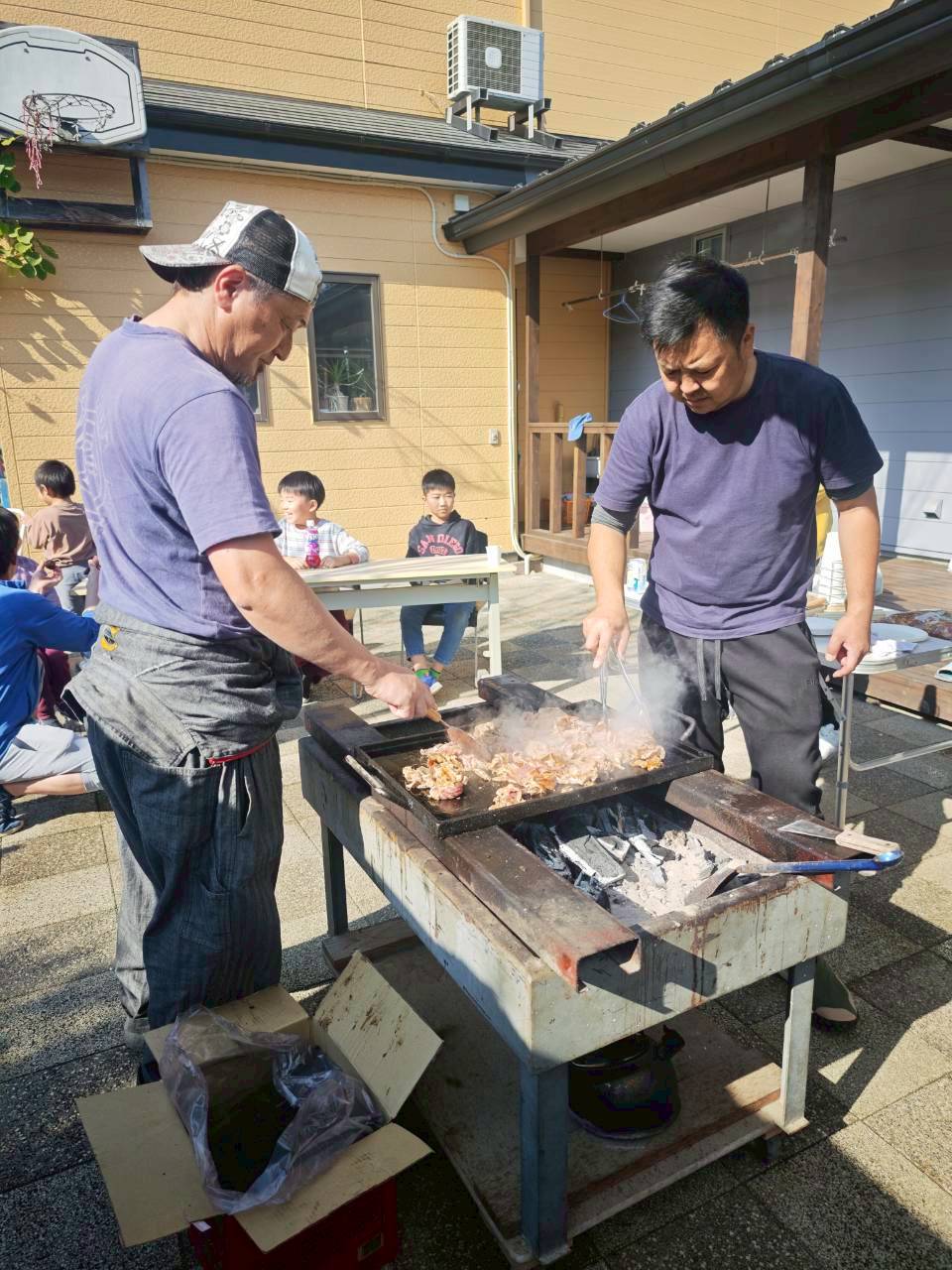 猪狩といえばBBQということで、社長と専務も一生懸命肉ジュージュー焼いてくれました。