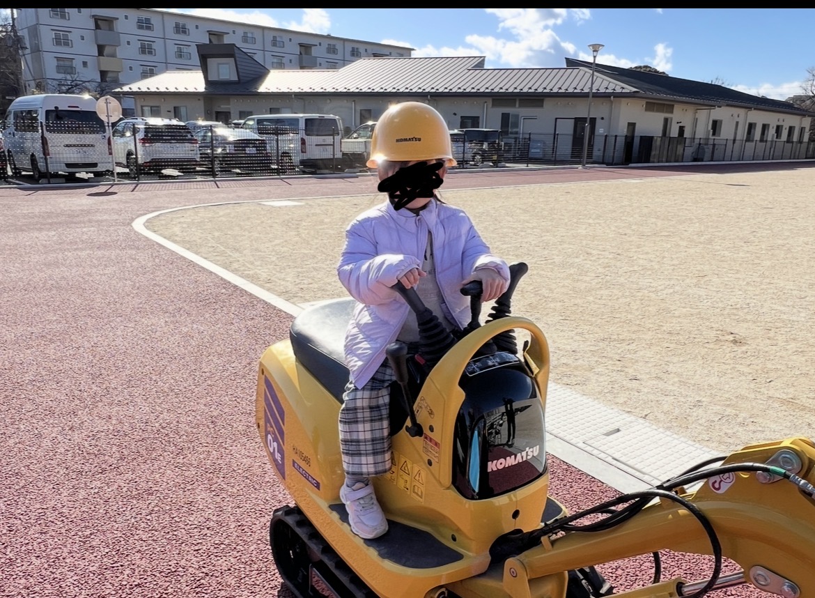 息子は最初は嫌がってましたがユンボに乗った瞬間得意げな顔になり、さらにこの黄色のヘルメットがめちゃくちゃ似合ってました笑